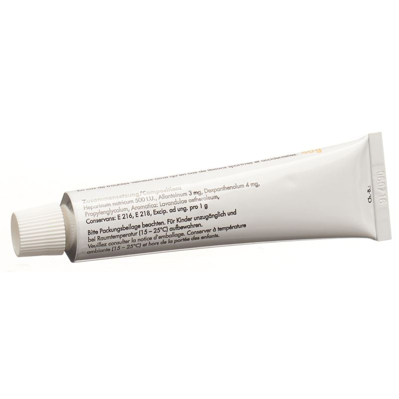•Das im Präparat enthaltene Heparin wirkt gerinnungshemmend, entzündungshemmend, schmerzlindernd und abschwellend. Zudem verbessert Heparin bei äusserlicher Anwendung die Durchblutung.