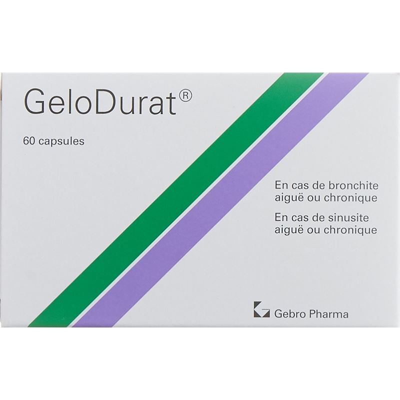 GeloDurat enthält 300 mg Destillat von ätherischen Ölen verschiedener Pflanzen und wird bei akuter und chronischer Bronchitis sowie bei Entzündungen der Nasennebenhöhlen (akute und chronische Sinusitis) angewendet.